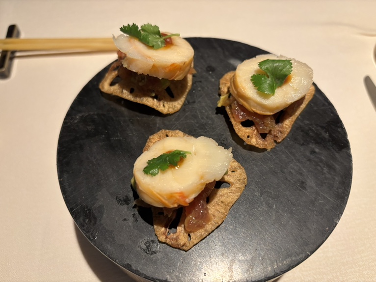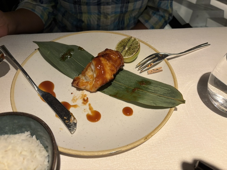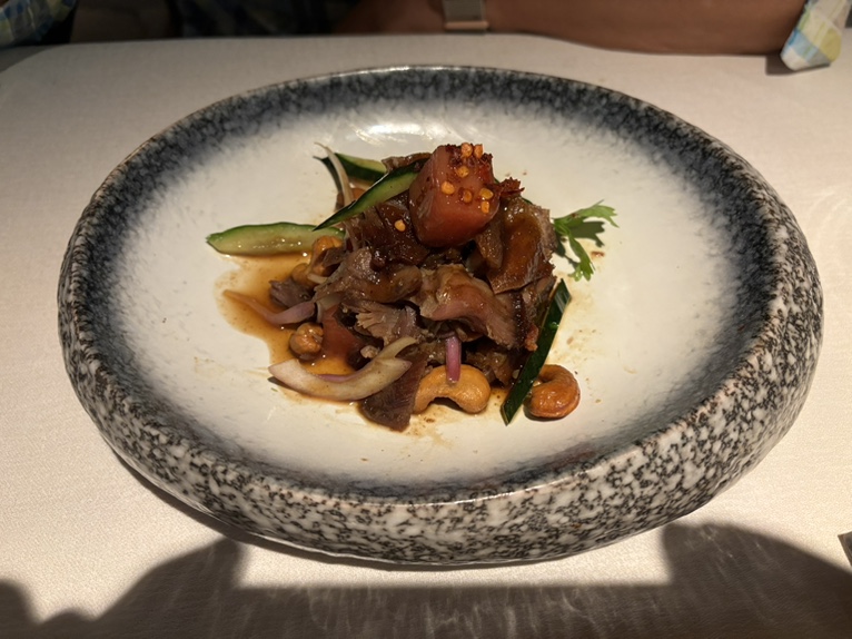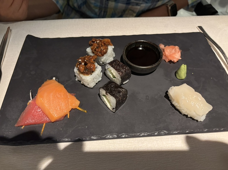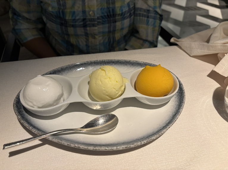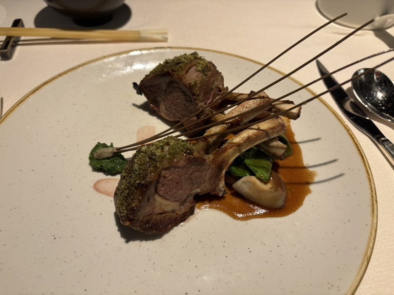 1-2 生鱼,3冬阴功汤,4鸭肉,5龙虾肉,6海鲈鱼,7羊排,8异国风味冰激淋,9荔枝方糕。海鲈鱼和羊排都非常好吃。