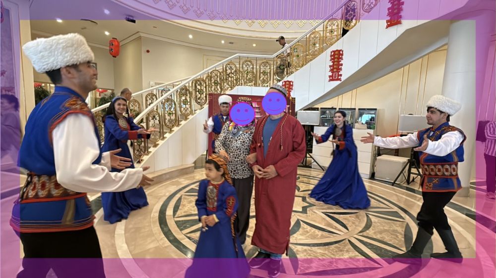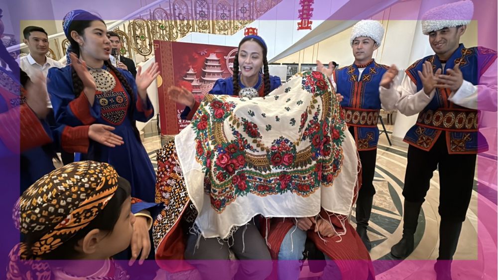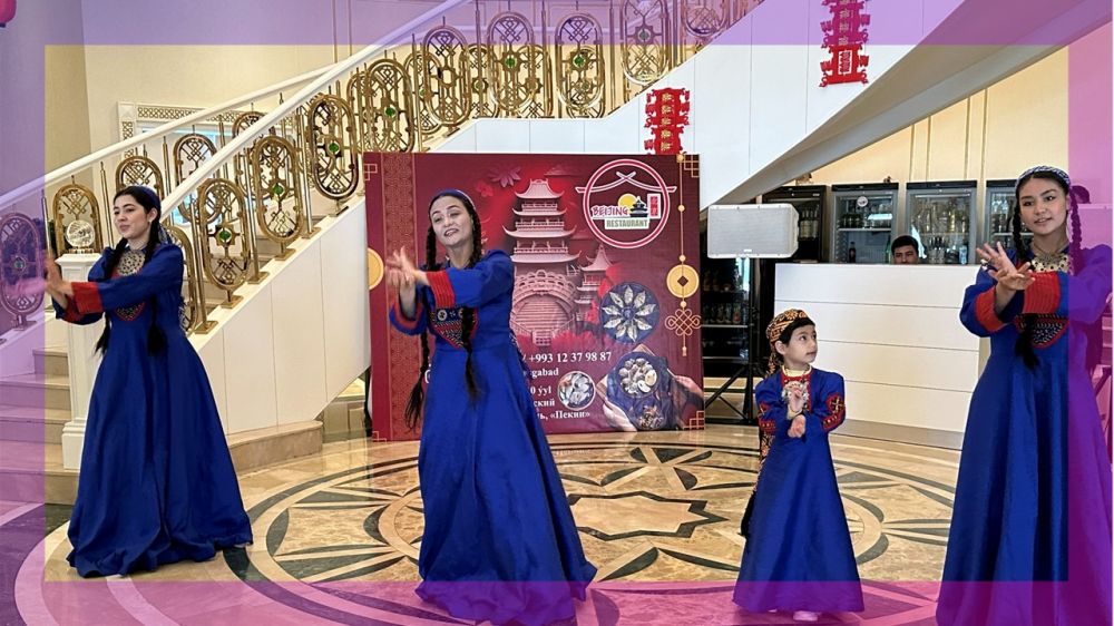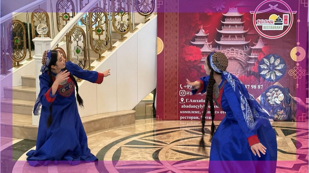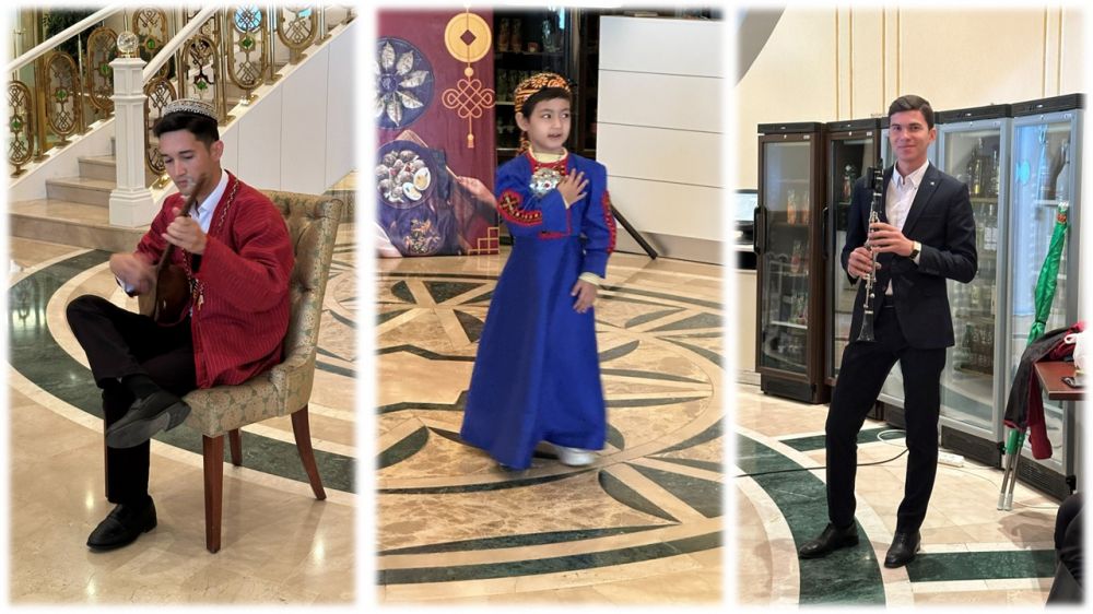 都塔尔琴弹起来,恰帕克舞跳起来……这一日,我们欣赏了一场热情洋溢的土库曼文艺演出。戴着白色毡毛帽的小伙儿以快速的步伐、灵活的转身展示着男子的力量;穿着蓝色长裙子的姑娘们,则欢快得像春天小鸟一般。看着满台载歌载舞,我丝毫不觉陌生。因为,这舞姿、这亮相,和我们从小就看的少数民族表演太接近了。