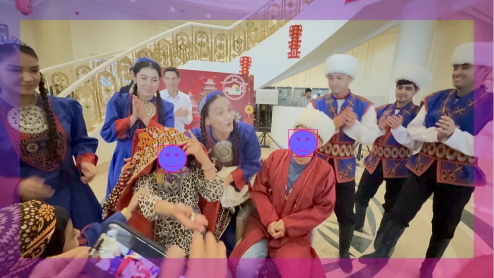 伴着喜庆的音乐和团友的喝彩,一对新人走向大厅。伴郎伴娘舞姿翩翩,男女老幼欢天喜地。很快,“抢夺银币大战”开始啦,新娘骄傲地展示着“胜利成果”。接着,婚礼司仪解下了缠在新郎腰间的方形花布,罩在新人头上,女人们开始有节奏地吟唱些听不懂的祝辞。最后,众人把一对璧人围在中心,在明快的传统弹唱乐里,摇摆着手臂,旋转着身体,送上对新婚佳人的美好祝愿。