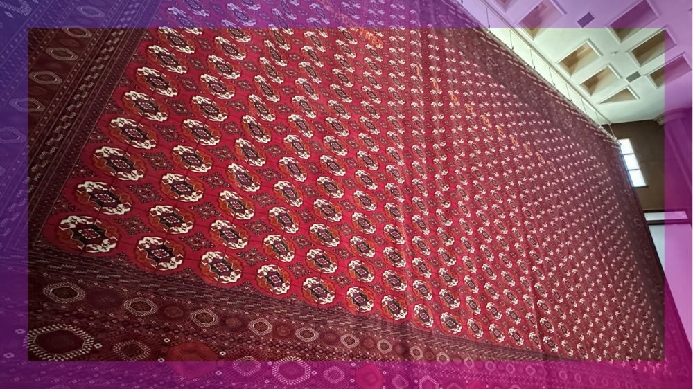 我清楚地记得,婚礼中的新娘是披着一块“小地毯”亮相的。被视为“民族灵魂”的地毯是土库曼的三大国家符号之一,(汗血宝马和土库曼牧羊犬是另外二宝),它甚至还出现在国旗和国徽上。在国家博物馆里,我们见到了吉尼斯世界最大手工地毯“黄金时代”,也更加理解了土库曼谚语“水是生命,马是翅膀,地毯是心灵”的涵义。
