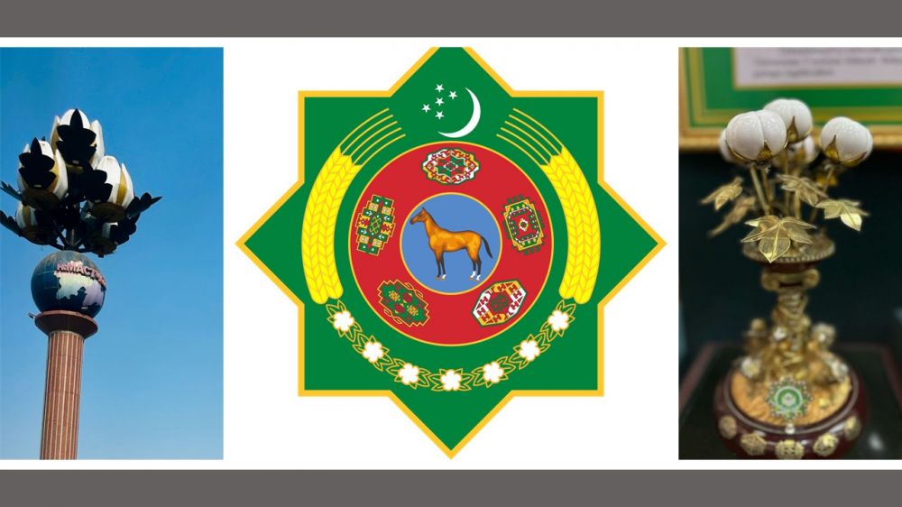 国徽上及城市里,也常见棉花“出镜”,因为土库曼是世界十大棉花生产国之一,棉花被称为“白金”,是其支柱产业。
