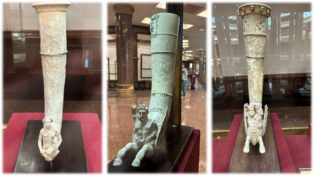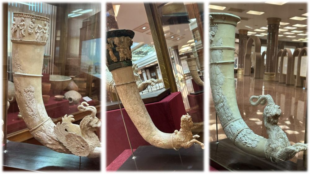 这些是什么东东?是祭祀用的装饰物品还是有实用价值的器皿?我们充满好奇。地导主玛介绍道,“这是Rhyton,在古时的波斯至巴尔干半岛一带,它们是广为使用的酒器。”