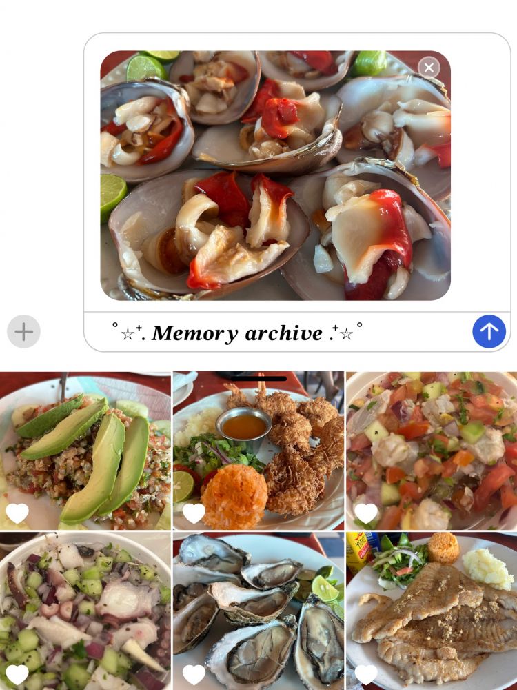 最上面那个是cabos特产,巧克力贝,上桌的时候还是活的,小青柠汁一挤,贝克肉肉眼可见的收缩。