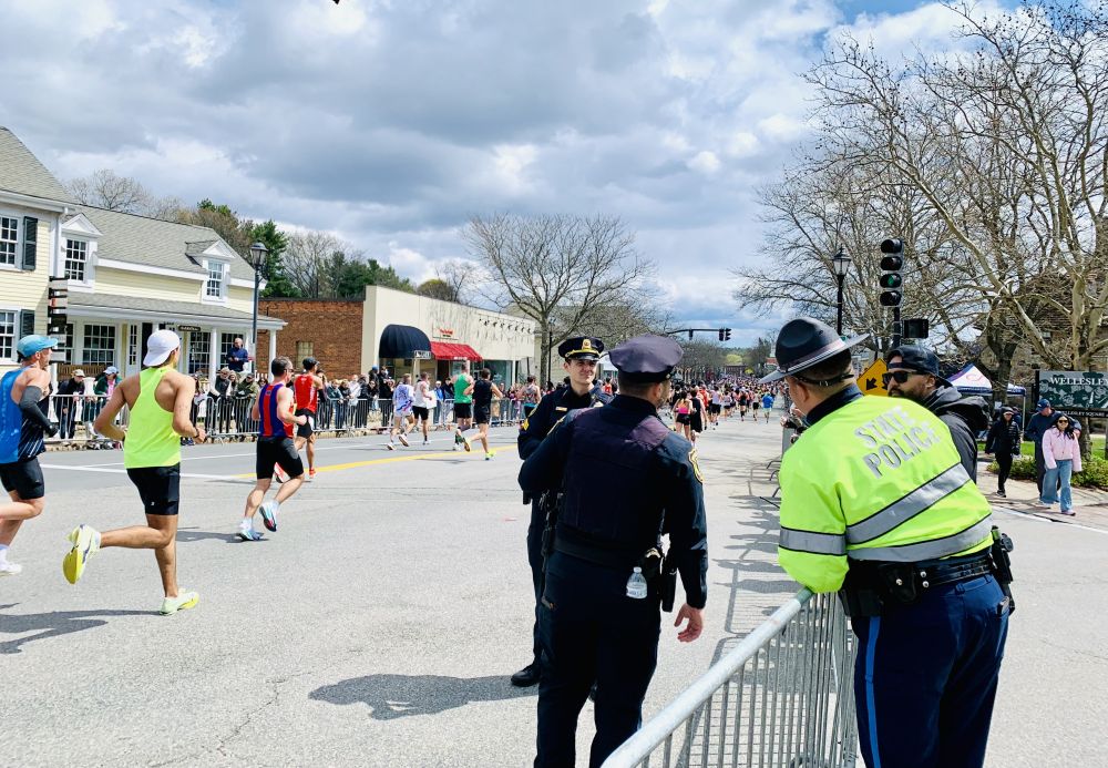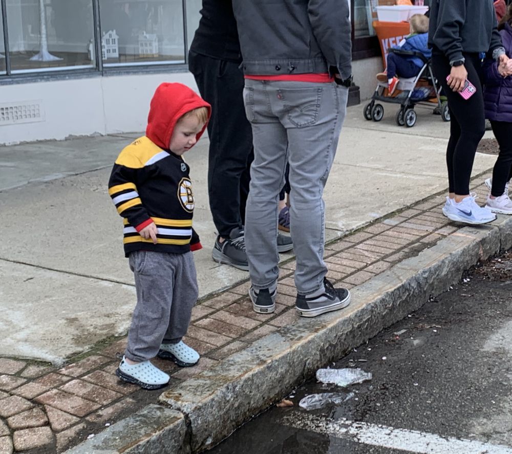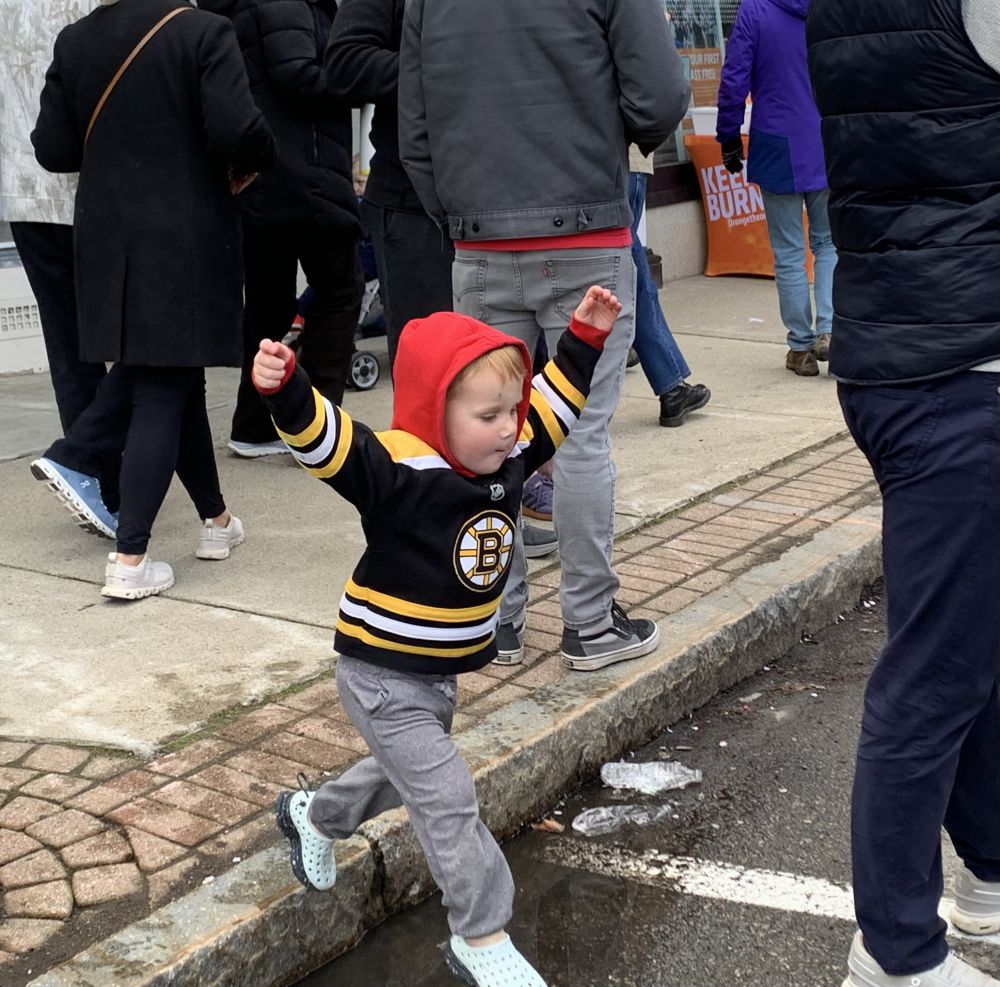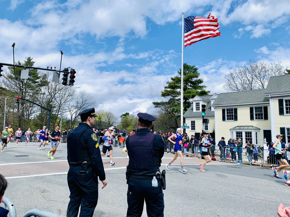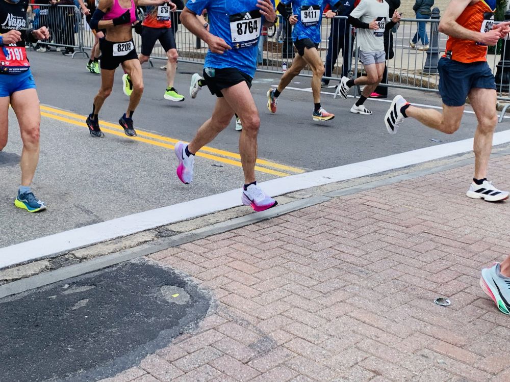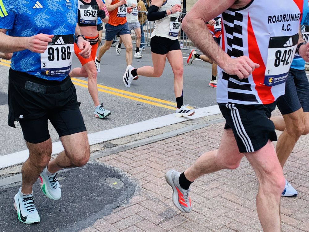今年看波马有几点感受。第一是孩子多。尤其是小小孩。第二是亚裔跑者比较开心活跃。过去看到他们一直低头往前冲的多。今年有好几个人和鼓掌的观众互动。也许那是他们的家人或朋友。我们的朋友也在跑。他去外州读医学院。回来跑。可惜我没看到他。第三点,可能是天有点凉。搞怪的奇装异服不多。也许在后面。