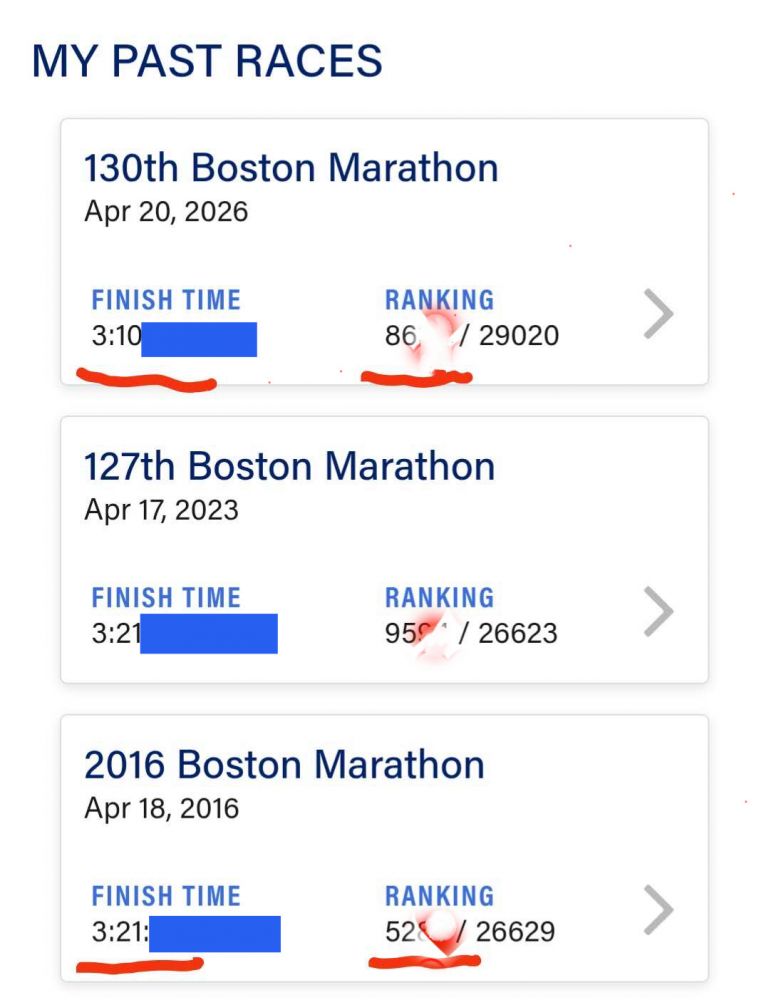 今年我们龙帮跑团有14位跑友参加昨天举办的第130届波士顿马拉松,他们当中有人创下了赛道个人最好成绩,而且有人还跑出了个人最好成绩。除了比赛当天的天气助力,更主要的是他们的日积月累的努力。在为每一位跑友感到骄傲,恭喜祝贺他们的同时,有一位跑友的经历尤其使我感动,非常励志。