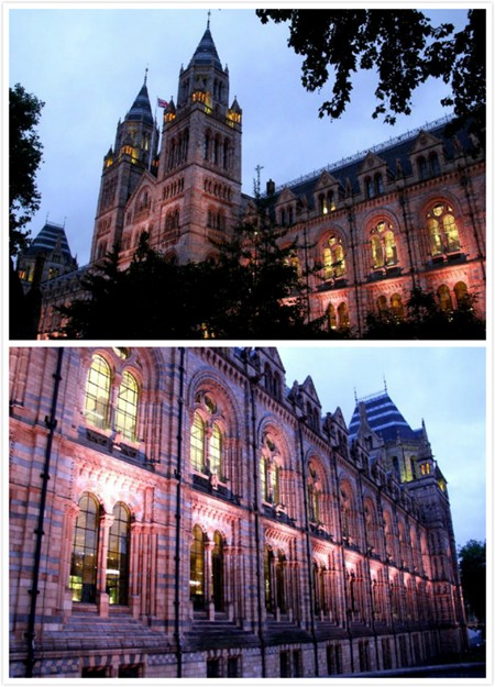 照片14:夜幕下灯火辉煌的英国自然历史博物馆。