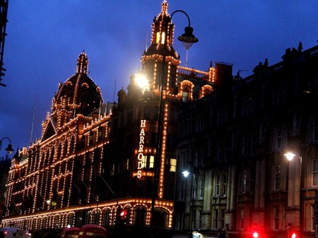 照片16:尽管企鹅先生和我都有伦敦交通卡,但是晚会结束后,我们决定徒步从博物馆回到旅馆(5公里路),欣赏夜幕下的伦敦。这是位于Brompton路上的伦敦著名中高档商品店Harrods。