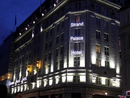 照片21:从Trafalgar Square,沿着Strand大道,很快就到达我们下榻的Strand Palace Hotel—我们在伦敦这5天临时的“家”,5公里路就这样走完了。两人如此在夜幕下的漫步约会,不禁使我想起英国著名诗人Robert Browning的诗《Meeting at Night》“……through its joys and fears, then the two hearts beating each to each!......”?