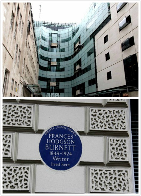 照片25:英国广播电视公司大厦以及著名女作家Burnett曾经居住过的地方。Burnett女士的名著《A Little Princess》和《The Secret Garden》是我的女儿小企鹅成长过程中最喜欢的儿童文学作品之二。我也喜欢Burnett女士的作品,当初是我将她的作品介绍给女儿:根据女儿的年龄,先是用讲故事的方式;然后,买相关作品改编的电影录像给她看;再然后,购买相关原著让她自己阅读。