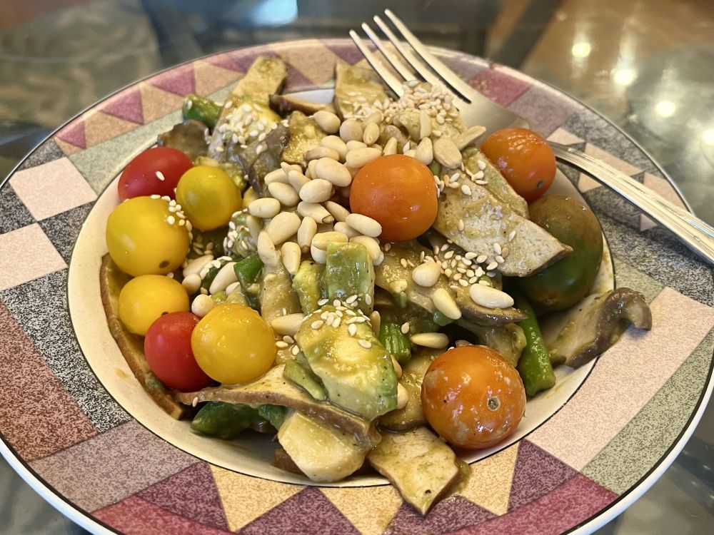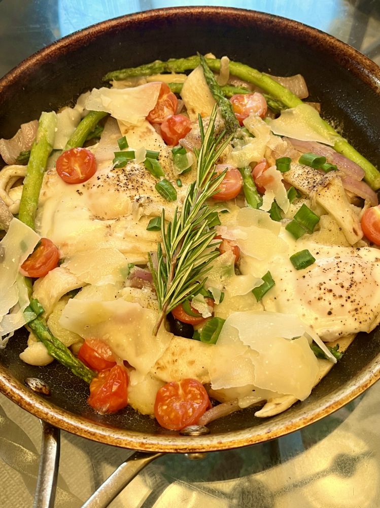 早餐:Taco Skillet, 蘑菇、洋葱、芦笋、青椒、小番茄、cheese、鸡蛋,Taco