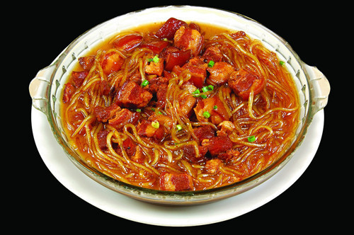 猪肉炖粉条到2016年已经流传到了全世界207个国家,比奥林匹克的奥运大家庭206个国家还多一个国家,虽然,印度的猪肉炖粉条有咖喱的味道,虽然日本的猪肉炖粉条有芥末的味道,虽然美国的猪肉炖粉条有麦当劳的味道,虽然非洲的猪肉炖粉条炖的非常黑,但是,同宗同源,我们可以拍着我们的鸡胸说,猪肉炖粉条源于我们伟大的中国!