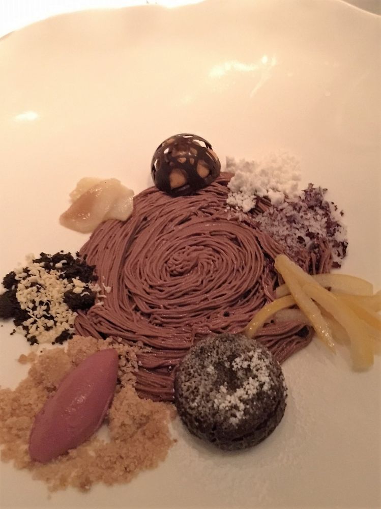 米其林餐厅很体贴的送给我们一小块蛋糕。别看量不大,最后甜点都没有吃完!