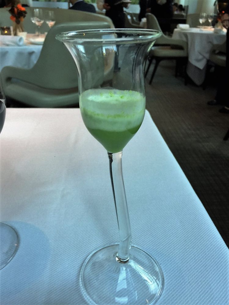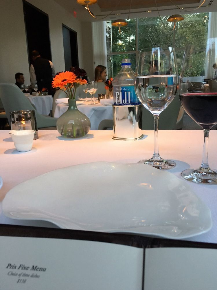 根据地点就选择了位于中心公园的川普国际酒店大楼里的Jean-Georges。提前一周在网上顶餐桌,只有周五晚上5点有座位。这种名牌效应不允许我们有任何怀疑,实际上也不用怀疑。就餐时老公还问侍者,餐馆和川普有无关系,人家小姑娘赶紧澄清他们只是租这个地方,和川普没有任何关系。