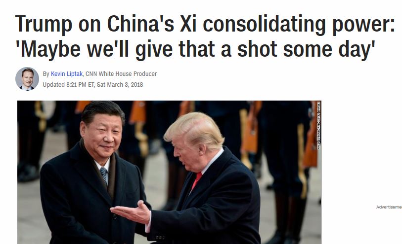 上次说到连任不到一天,中国大大就抢先实现了。我还在评论里说乌鸦嘴呢!