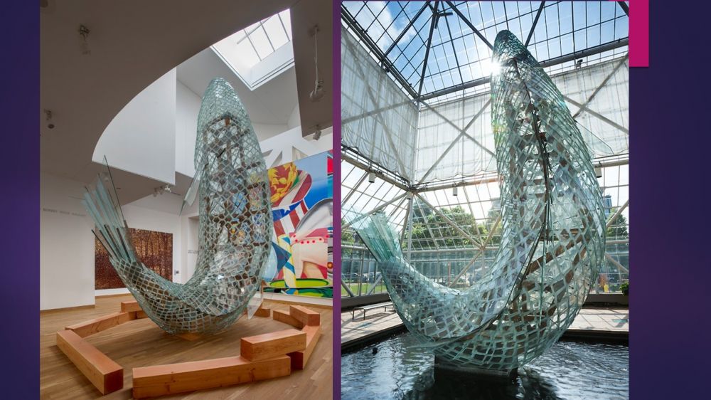 走进WAM,一座硕大的鲤鱼雕塑呈现在面前,顿时我被一股欣喜之情吞没了。我的脑海迅速闪现出若干年前的一幕:在明尼阿波利斯的一个户外雕塑公园,有一条庞然的玻璃鲤鱼,居住在一个诺大的玻璃房里。当阳光投射在透亮的鲤鱼身上时,会泛起刺眼的光芒。孩子们围绕着从水中腾起的鲤鱼,不知疲倦地一圈圈地追逐……这应该是许多明州人的共同温暖记忆。曾几何时,因为公园施工,鲤鱼消失了。今天,当这条standing fish突然出现时,那消失了经年的画面倏然鲜活起来,我心里还真是泛起了小激动的涟漪。