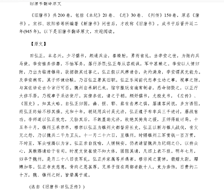 大家发现这东西是不是和史书上的写法完全不一样了? 其实区别不大啦,看看《旧唐书》是怎样写故事的: