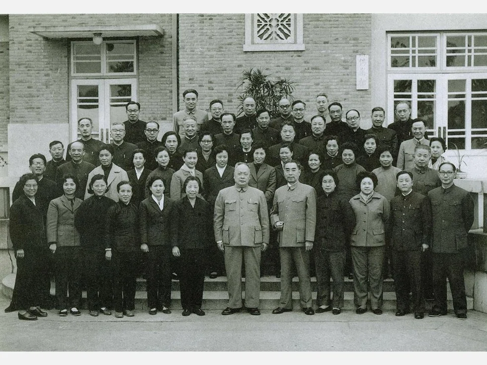 第二排左起:乔冠华(外交部部长助理)、 许建国(驻罗马尼亚大使)、 龚 澎(乔冠华夫人,外交部新闻司司长)、 王宏瑜(孟英夫人)、白淑贞(杨琪良夫人)、孙 琪(李清泉夫人)、张兰馨(王若杰夫人)、刘锦琳(仲曦东夫人)、方 林(许建国夫人)、许 恒(张伟烈夫人)、赵瑞轩(罗士高夫人)、熊友榛(申健夫人)、黄 镇(外交部副部长)