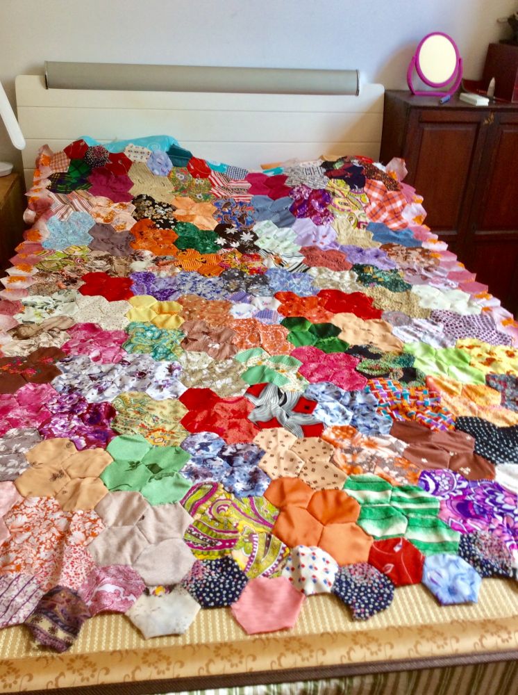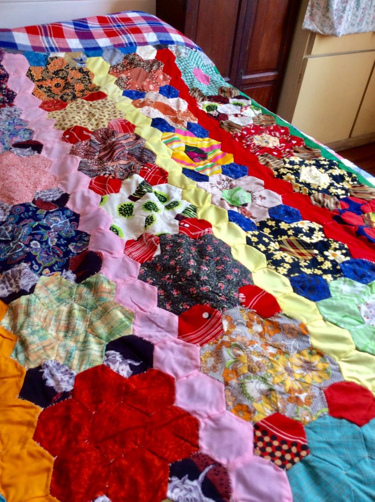 当我被子平铺在床上,阳光照在淡蓝色的底布上,真的很美。这就像外婆在对我们说:“孩子,我吃过的苦都过去了,留给你们的,只有这些花儿。”
