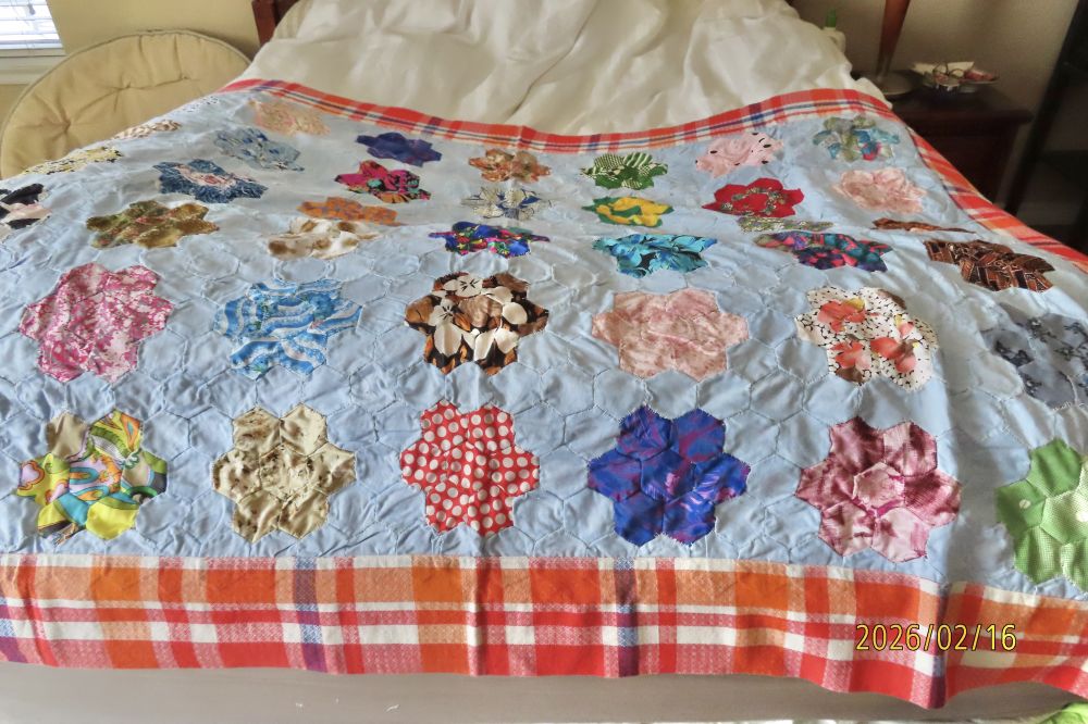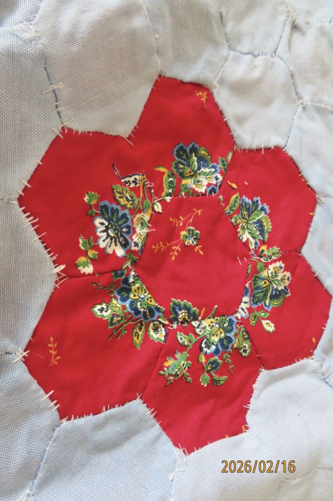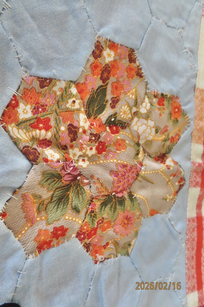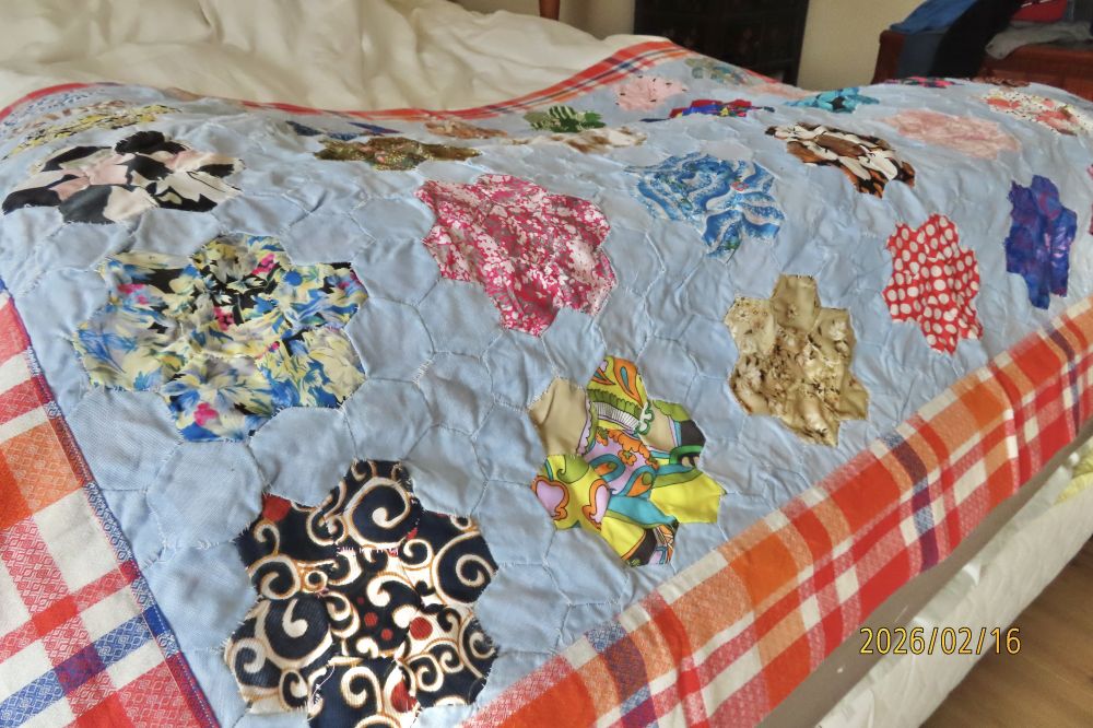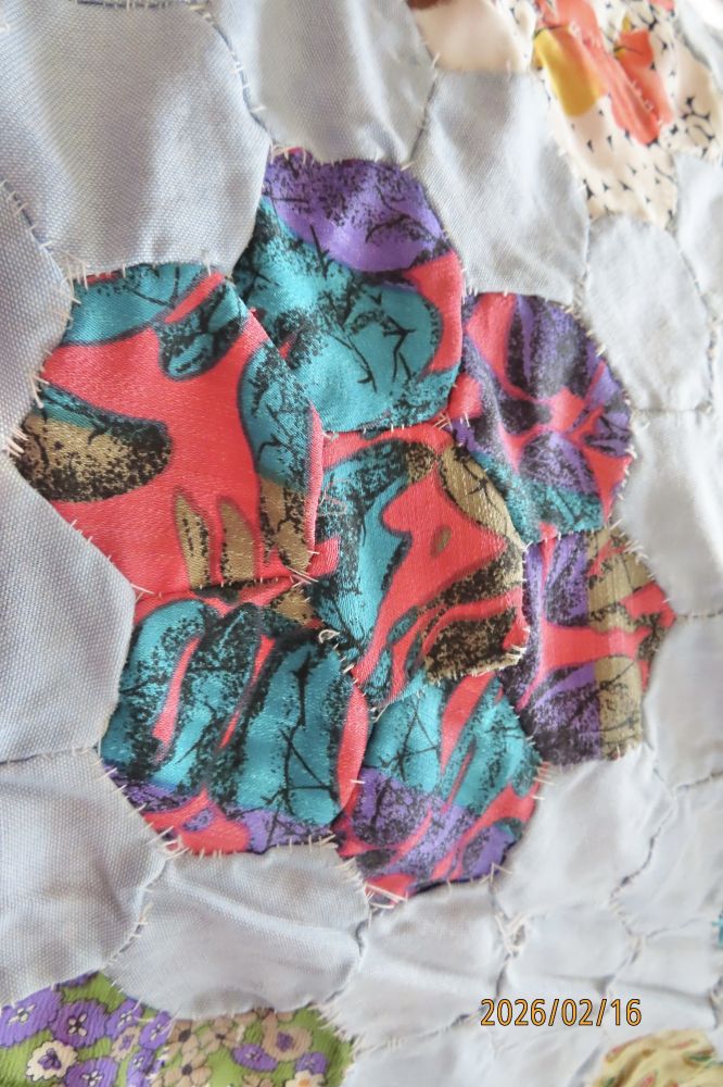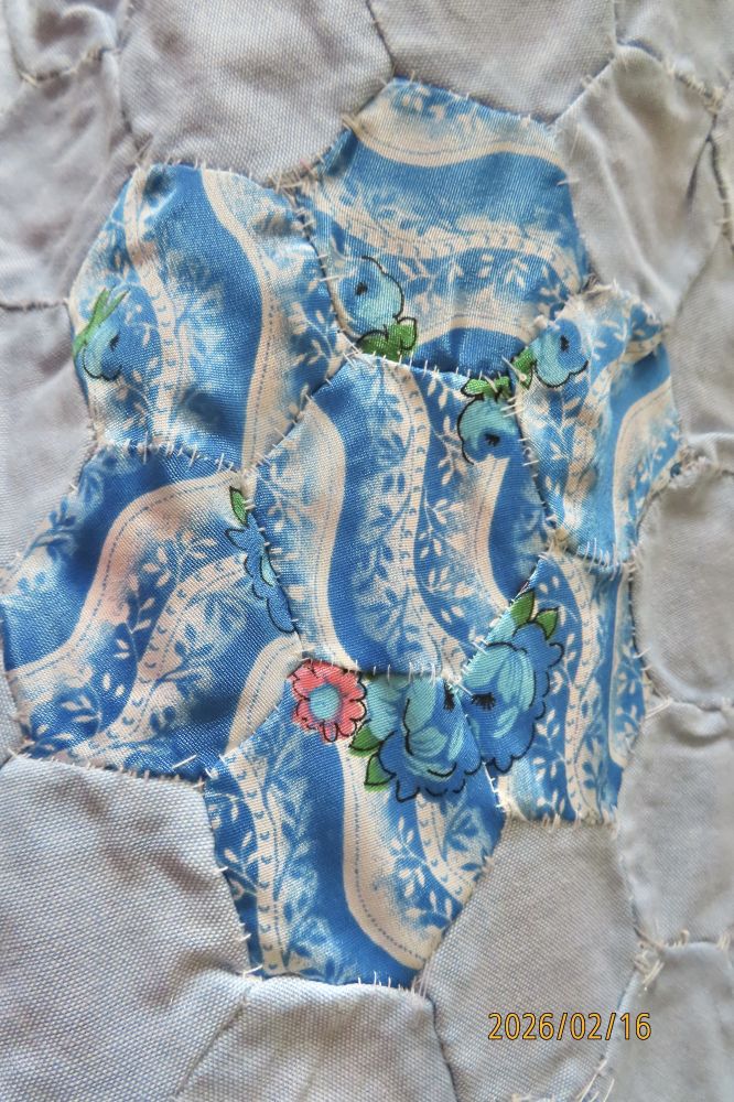 外婆晚年完全空闲下来后,开始为分散在世界各地的二十多个孙辈缝制被子。不同于我哥哥那条色彩浓郁的全拼样式,我这一条采用了清雅的淡蓝色底布,将一朵朵精心挑选的花色点缀其间。每一片布料都是外婆特意去买来的,每一寸缝线都承载着她对那个从未能亲自照料的孙儿的牵挂。