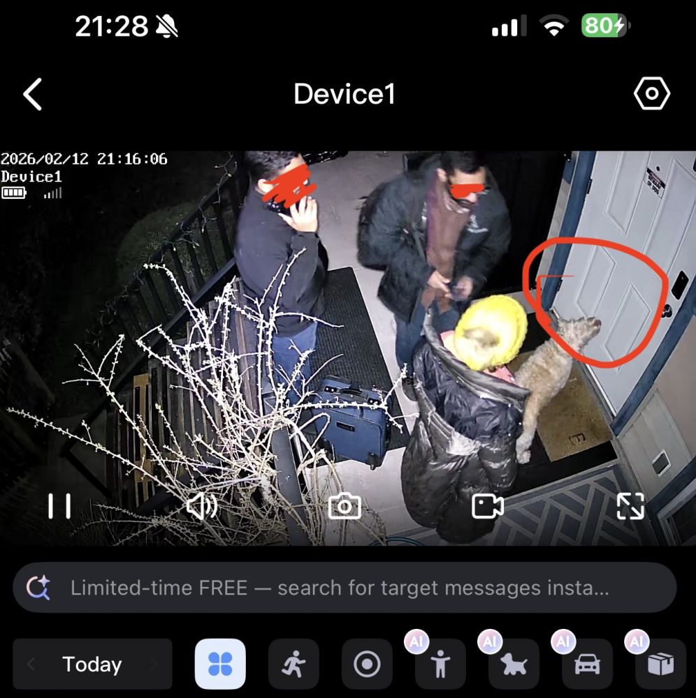 此人夜里21:00多抵达,我已等他许久。他到门口时,我监视器上看到陪同他一起来的有一男一女和一只大狗。