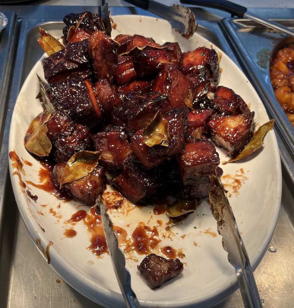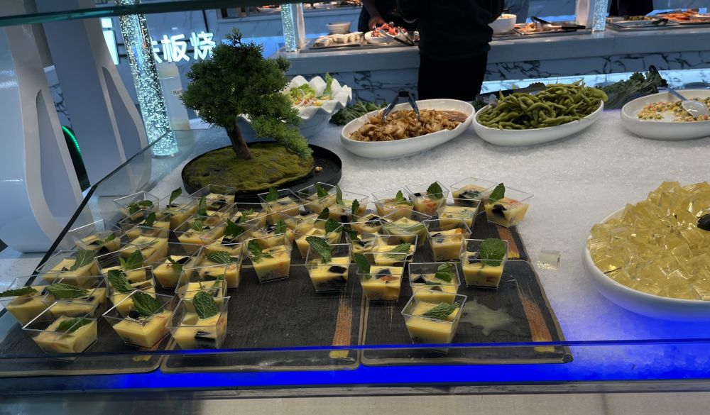 我一看就想说,沫沫家门口有棵假树吗?这家自助餐菜太全了,其实越这样越不一定吃得多,几块红烧肉就把肚子添得差不多了,除非吃得扶墙出门:-)