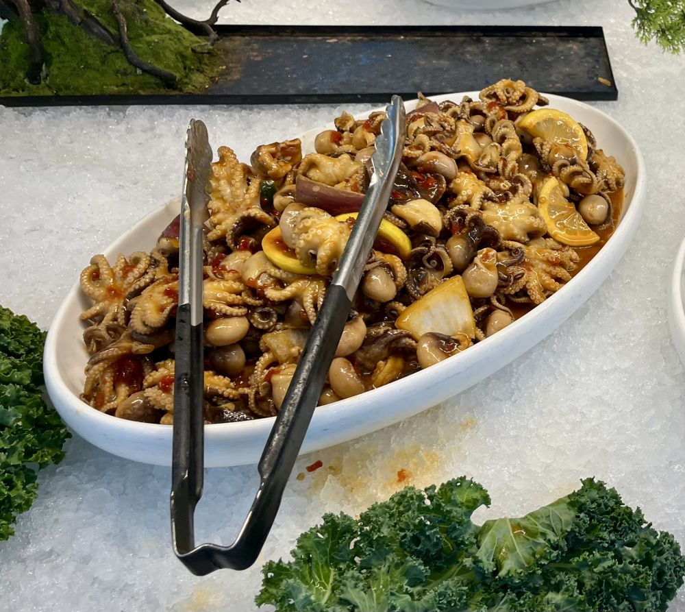 回复 '菲儿天地' 的评论 : 也给菲儿上茶~~~我们这个鳝丝也是冰冻的,看见评论说干净不腥就买了,做出来还可以,不觉得腥,但是没有国内那么鲜~~~我们也很久没吃自助餐了,妹夫找的这家,倒是食品特别丰富~~~菲儿新春快乐吉祥~~~