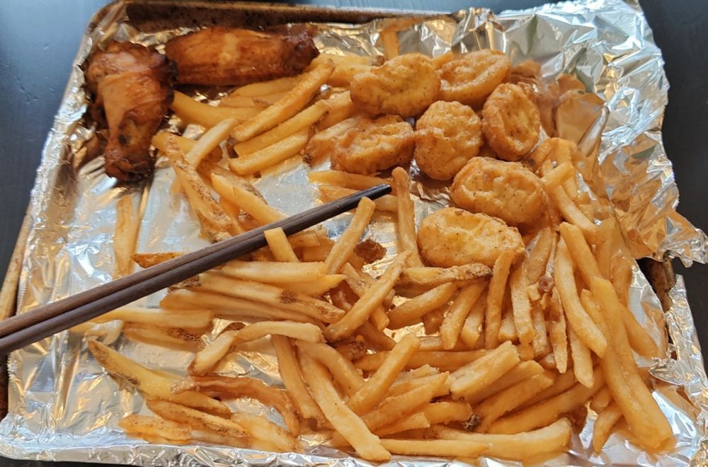 薯条、鸡翅等烤箱烤热了:
