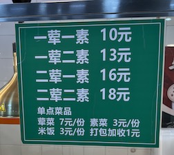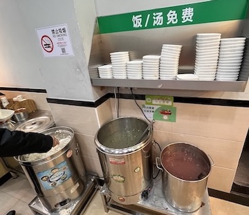 后来闹开了疫情,四年没有回中国。2024年再去的时候,中国深圳的街道上可以看到各种食堂。开始的时候有政府补贴和税收优惠,很多人经营食堂生意。 蛇口我常去的地方, 有一家食堂特别实惠,很多人去吃。 如果堂吃,主食米饭、小菜、粥/汤都自己随便添,一荤一素才10元。 对体力劳动者,如外卖、快递行业,很有吸引力。