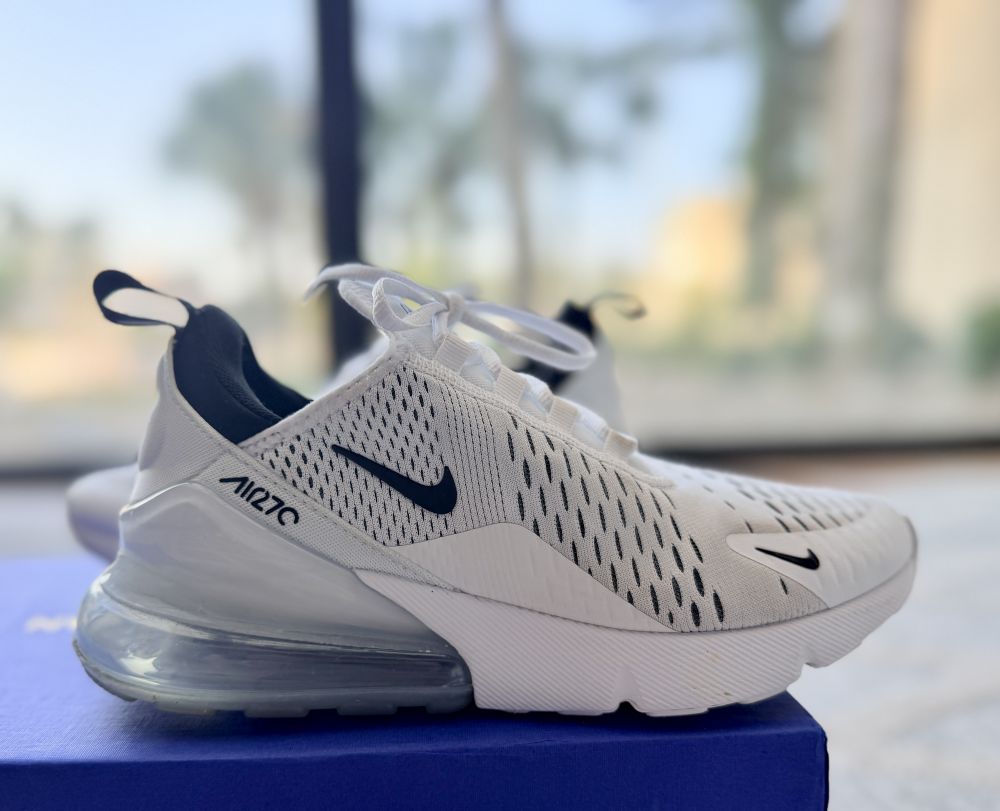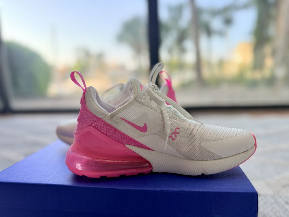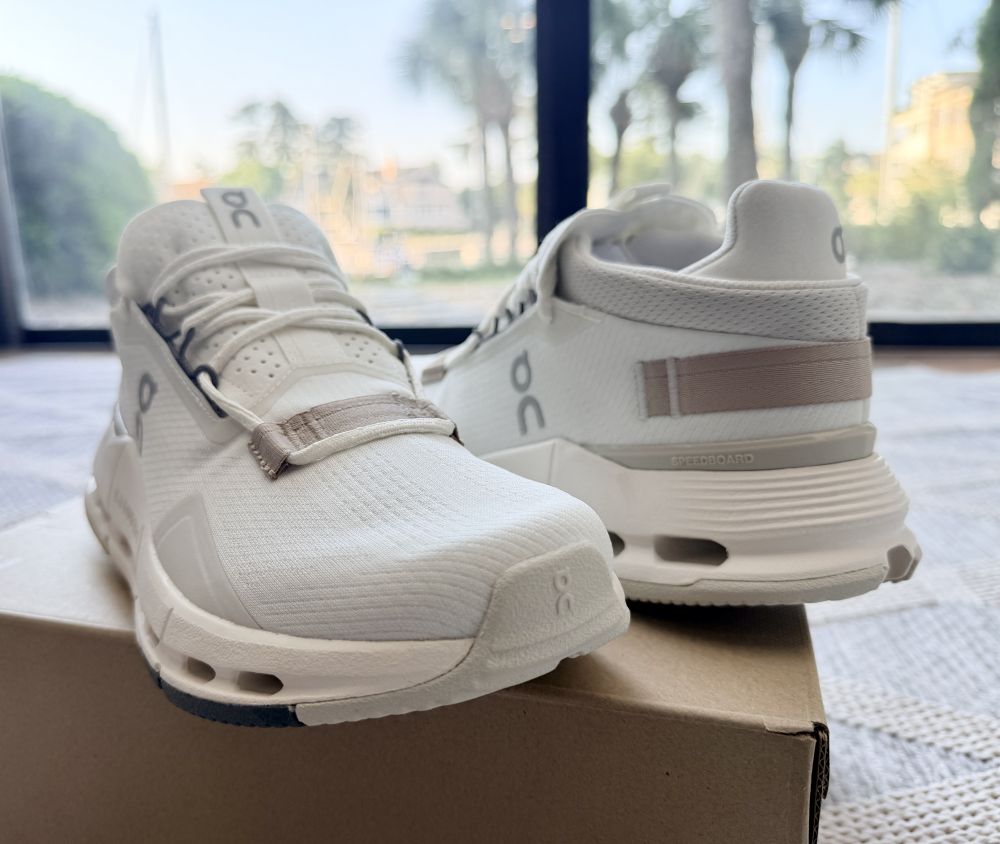 昨天收到,今天开箱一看,不是我喜欢的,因为鞋子的头太圆太大,看上去小小笨,我心里想,这应该是给脚很宽的人设计的吧,于是问闺女,答,这是目前最流行的跑鞋,叫我留着,她会穿。
