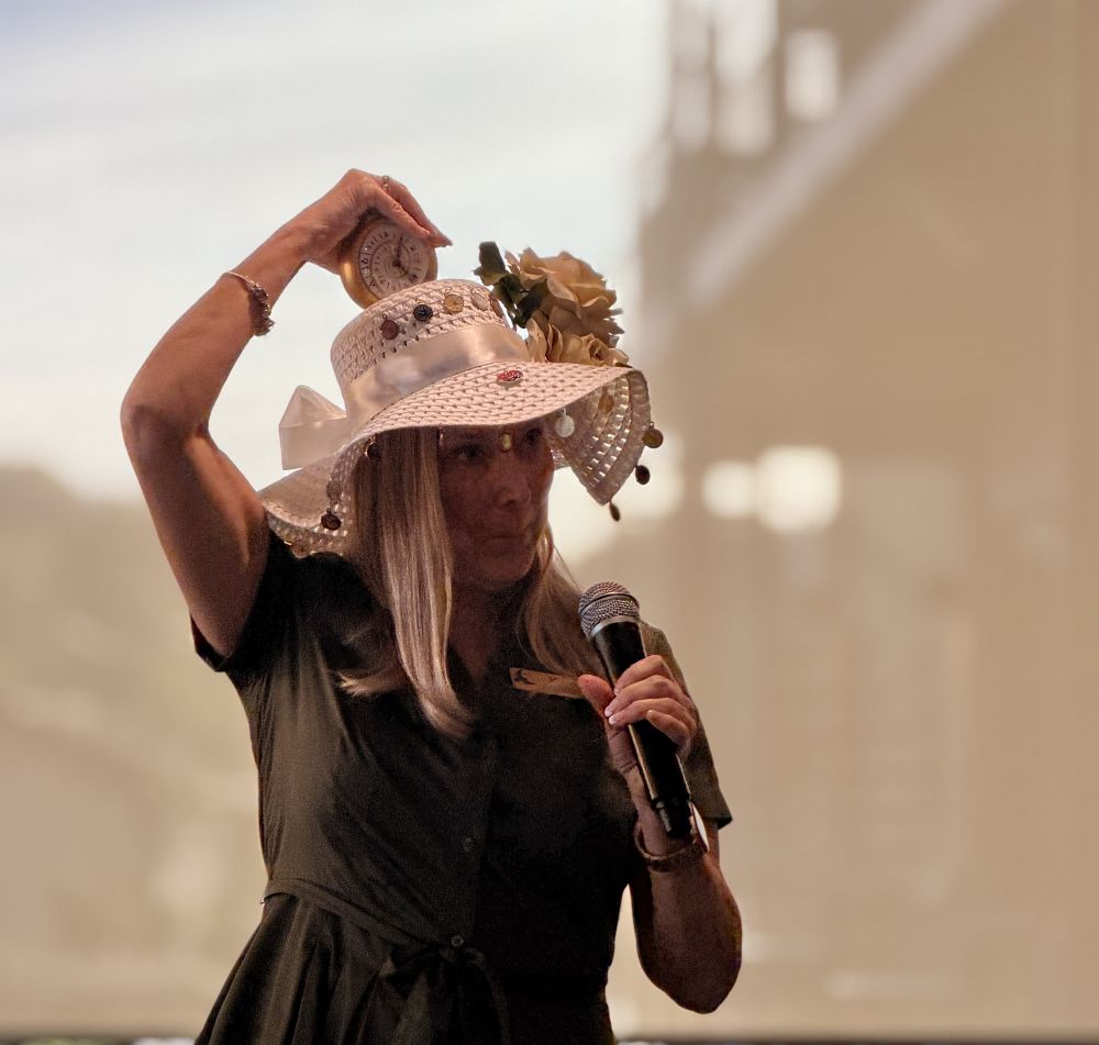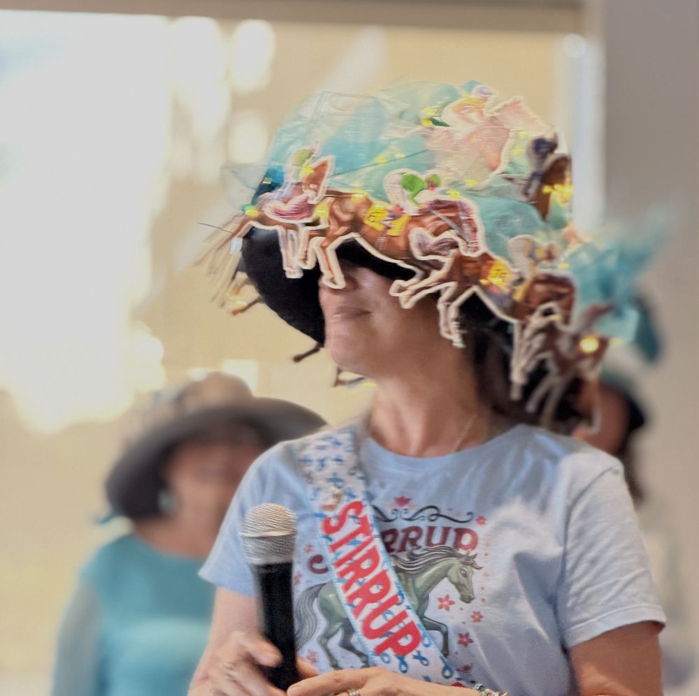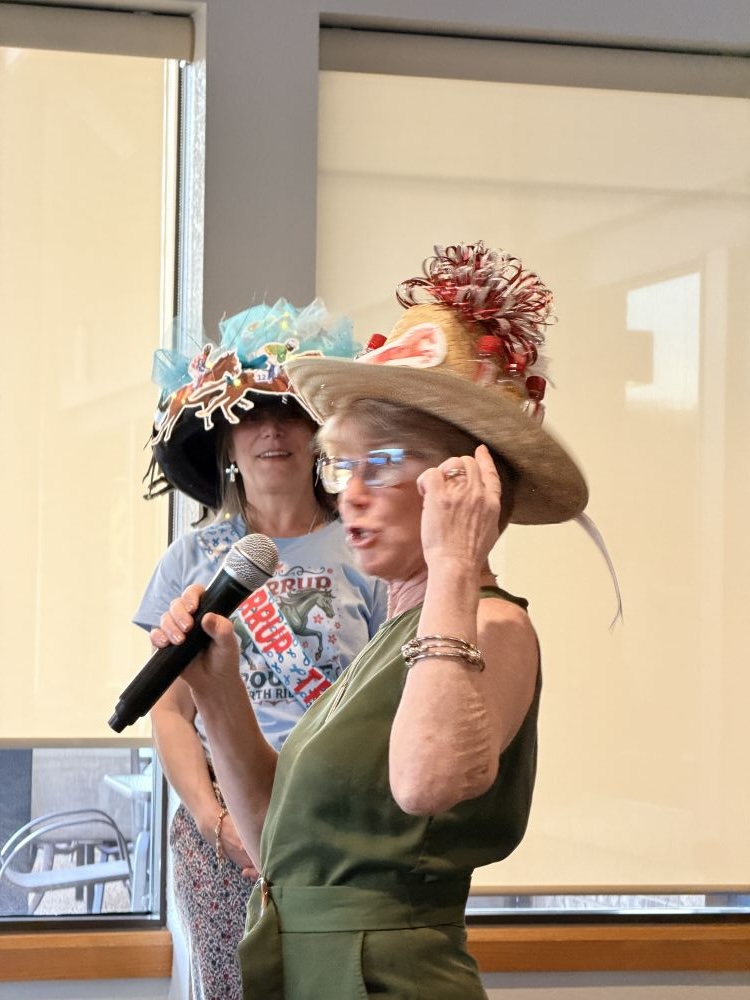 现场非常热闹,先是选举最佳帽子女生,愿意参加比赛的就上台介绍自己的帽子,我没有上台,因为我的帽子没有什么特殊创意,买现成的,现场很多女生的帽子都是有一番心思和自己的设计,很多人介绍自己的帽子的时候都提到自己的马儿,说明她们自己是有马的。