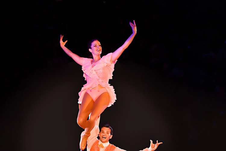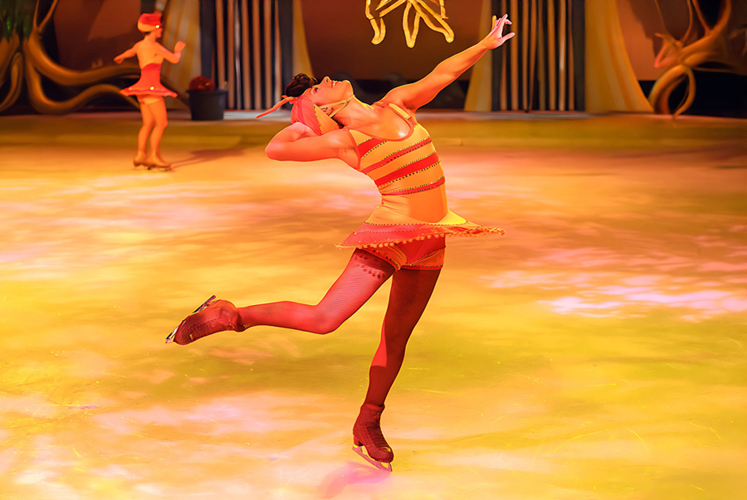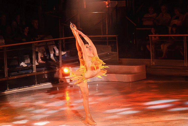 有室内真冰滑冰场地的游轮只有皇家加勒比游轮公司一家,独门绝技,而且是大型游轮(13万吨以上)上的船才配备。目前为止,大概只有十几艘船才上演冰上芭蕾。那是最好看的节目了,冰上芭蕾的演员都很年轻,来自世界各国,个个身手不凡。室内滑冰场一般在底舱的中部,那个位置是全船最稳当的地方。当轮船在海上遇到风浪摇摆时,人走起路来都深一脚浅一脚的,很难想象演员们怎么能在冰上滑行,旋转,托举和跳两周转,但他们都能做到。