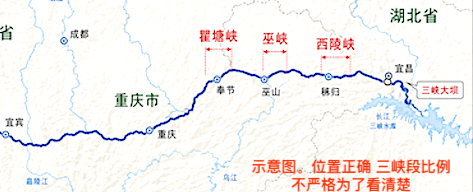 长江从青藏高原发起,穿越九个省和重庆市,至上海入东海。 全长6300多公里,是世界第三长河,亚洲第一;仅次于非洲的尼罗河和南美洲的亚马逊河。 从青海至宜昌是长江的上游。闻名中外的世界大峡谷三峡,由瞿塘峡、巫峡、西陵峡组成,全长193公里。 三峡大坝和葛洲坝位于西陵峡。