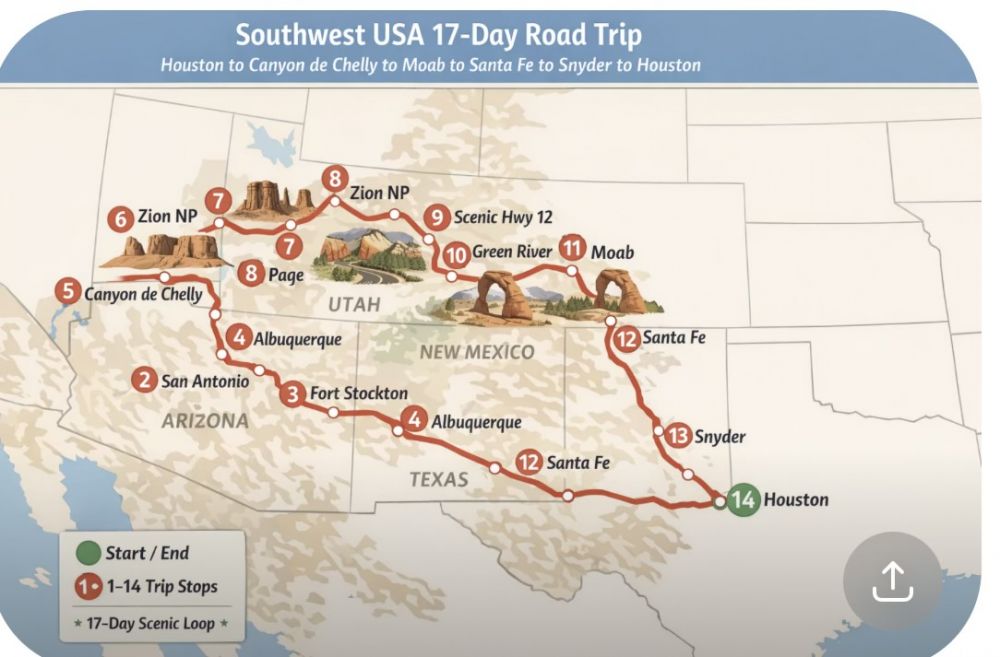 这趟自驾,从Houston出发,一路穿越德州荒原、新墨西哥高原、亚利桑那红岩、犹他国家公园,再回到熟悉的平原。