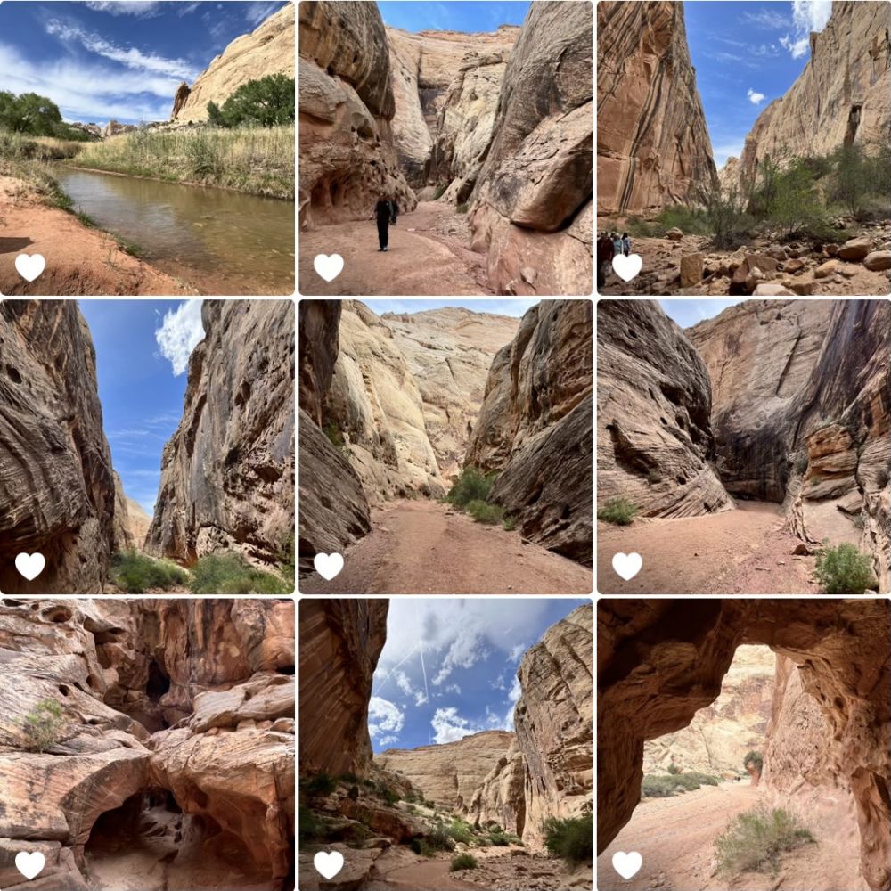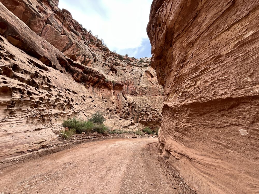 Capitol Reef National Park景观,巨大红岩断层,火星地貌。我们一直开到尽头Narrow, Hiking Narrow trail.