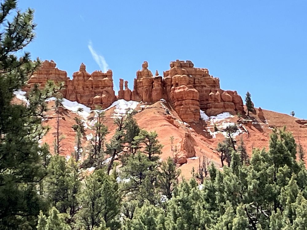 从Zion到UT12 路上,车开到山上白雪皑皑。