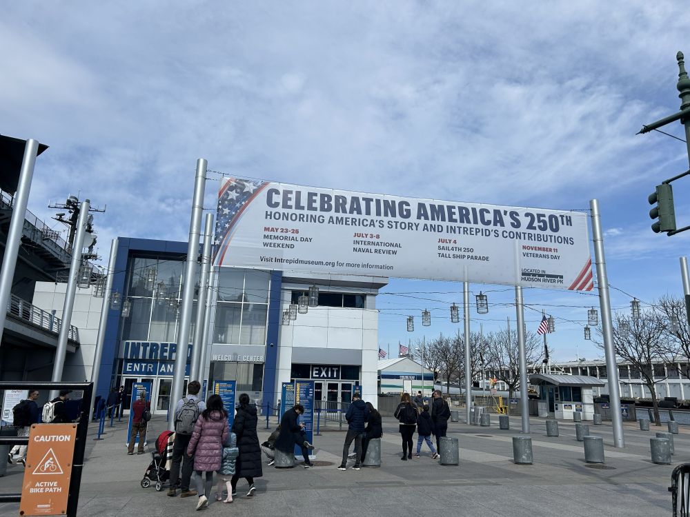 进入博物馆区域,赫然可见下图所示的横幅。今年美国建国250周年,无畏号博物馆将作为重要的展示平台,围绕“致敬美国故事”举办纪念活动,既回顾国家历史,也呈现无畏号在其中的独特贡献。