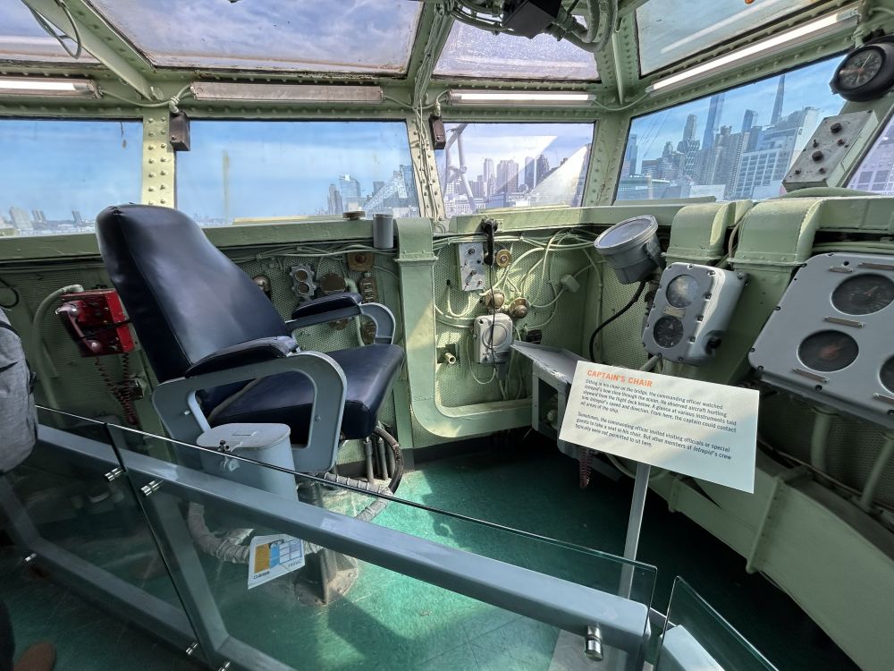 容易错过但值得看的是航母的核心区域“舰桥”(Island),进入舰长指挥室居高临下感受一下航母舰体的超大体量。