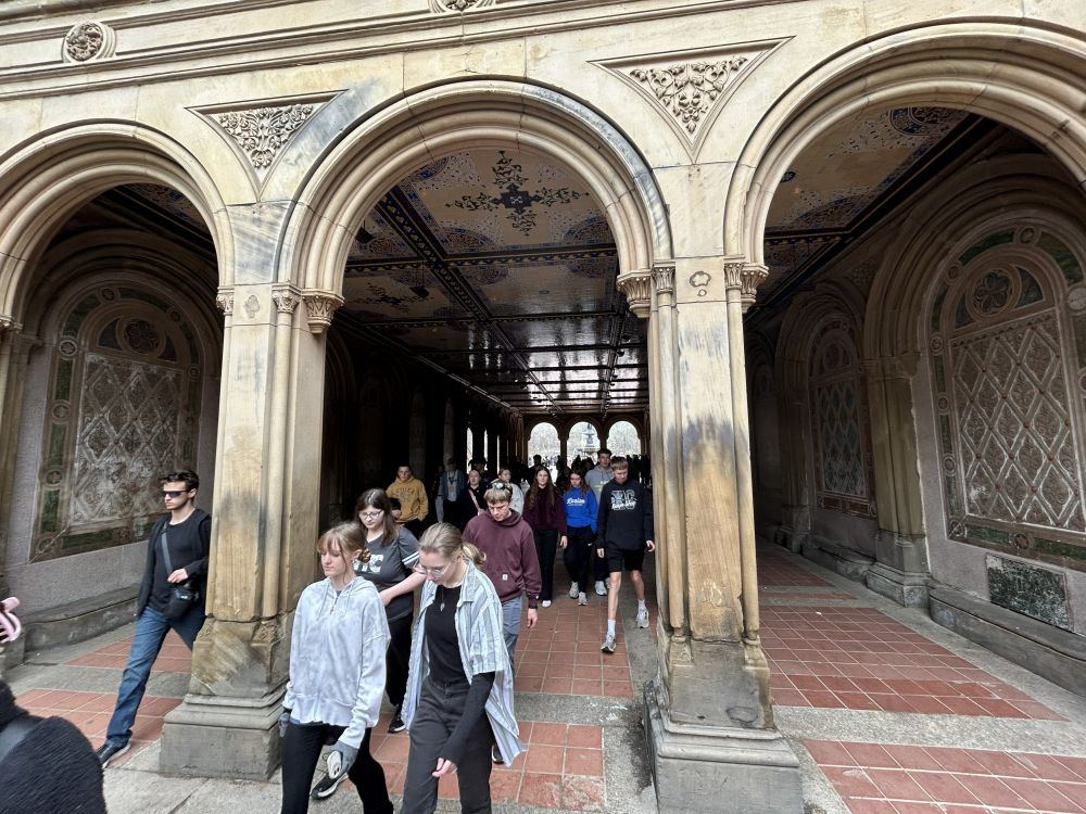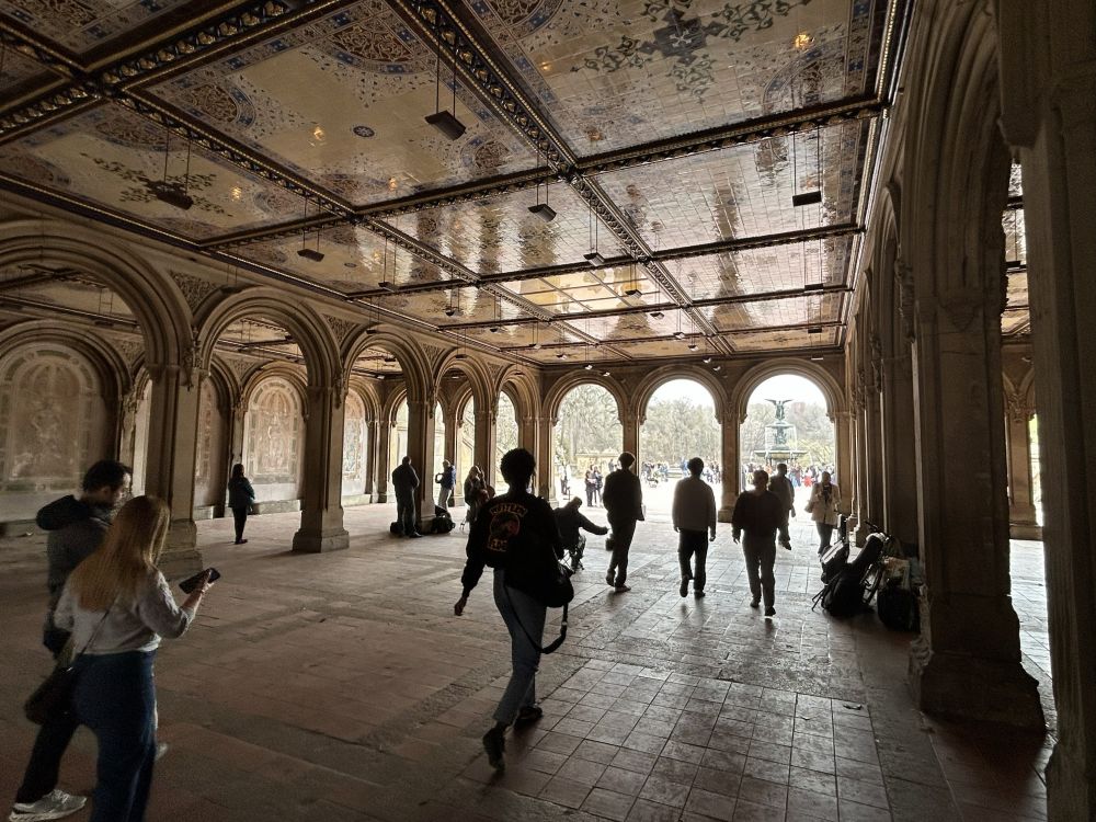 贝塞斯达露台(Bethesda Terrace)及其喷泉位于林荫大道(Central Park Mall)的北端。