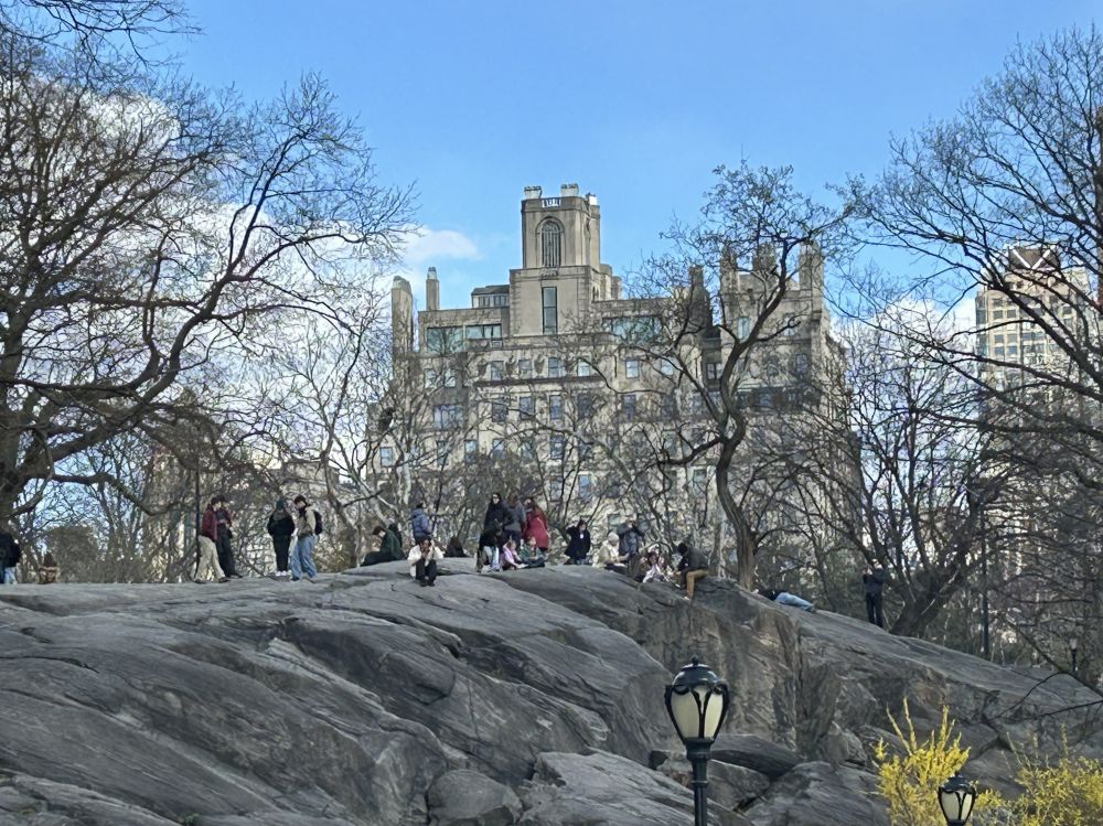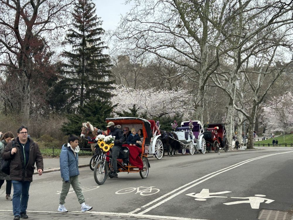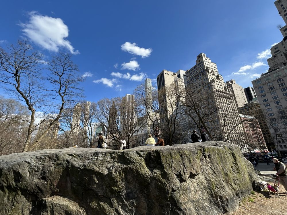 春暖花开,万木复苏。自然地想到应该多出去走走看看,享受这明媚的春光和无边的春色。有一天,太座问外孙女:你想去哪里玩呀?外孙女不假思索地回道:New York!于是,一家人很快敲定了这次“春游纽约”。那几天之后,还有家人远道从西海岸而来,这趟纽约行也有为他们来访踩点与探路的考虑。因为住得离纽约不远,我们以往无论是看秀,赏灯,还是会友,逛街,基本上都是当天来回的Day Trip。这次想玩得从容轻松一些,加上有小小孩“跟团”也快不起来,便订了两个晚上的酒店,住在曼哈顿中城的希尔顿。那里位置居中,在53街和第6大道相接处,从42街和第7大道交汇处的巴士总站出来,步行过去即可,非常方便。从酒店出来,向上走没几个街区就是中央公园,而时代广场等处更是近在咫尺。