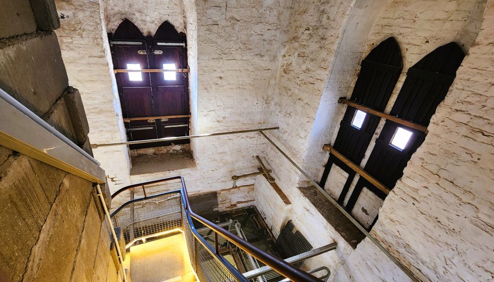 防御细节: 门洞非常窄,以前还有护城河和吊桥。门上方的那些装饰性的小窗户和拱门其实是防御射击孔的演变来的。