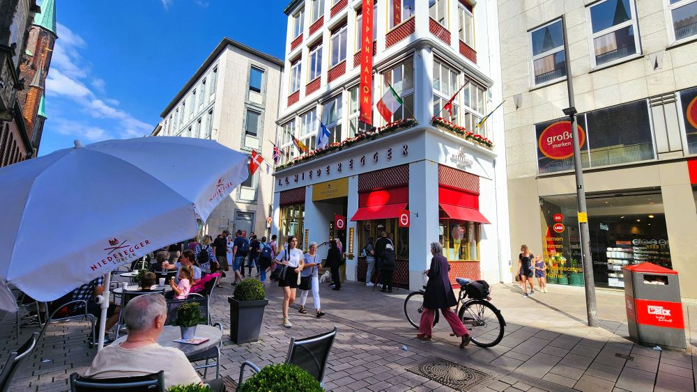 吕贝克最甜蜜的殿堂——尼德艾格咖啡馆 (Café Niederegger)的这一口杏仁糖蛋糕 (Marzipan Nusstorte) 是吕贝克最温柔的内核。