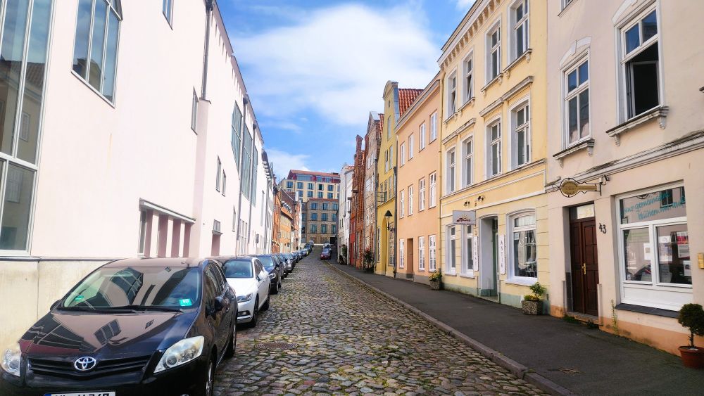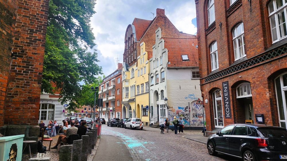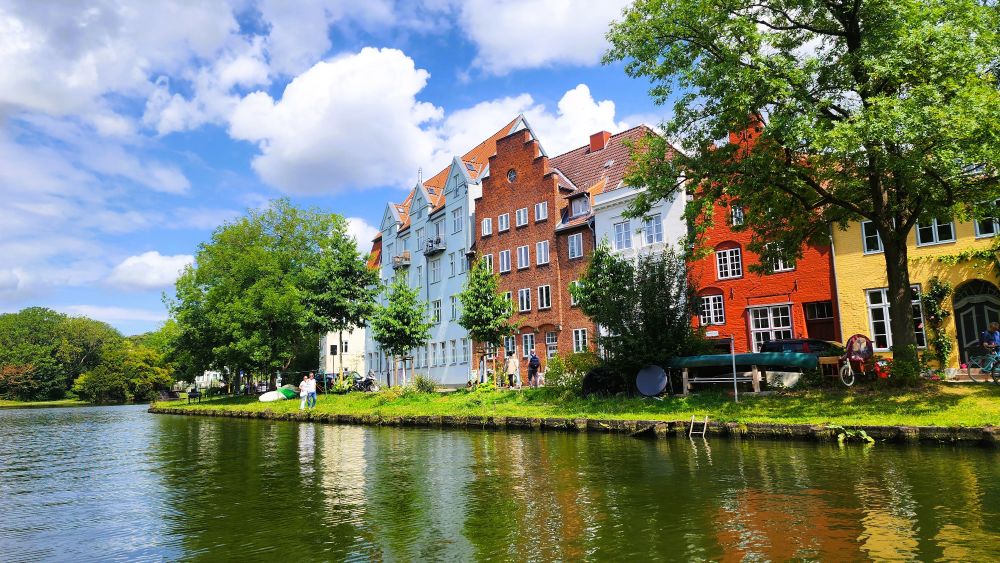 老城东南方向, 有一整片“后院靠河”的生活带。Lübeck 的水岸没有被完全商业化。不像汉堡、哥本哈根、阿姆斯特丹那样把水岸全部变成公共或商业空间, 吕贝克保留了大量 居民直接接触水的权利。