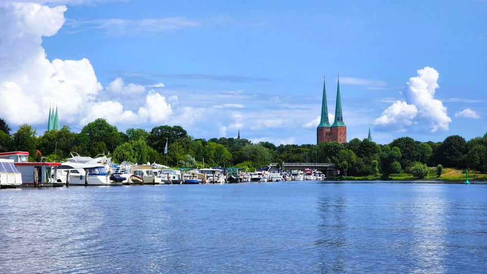 远处的双塔是吕贝克大教堂 (Lübecker Dom)