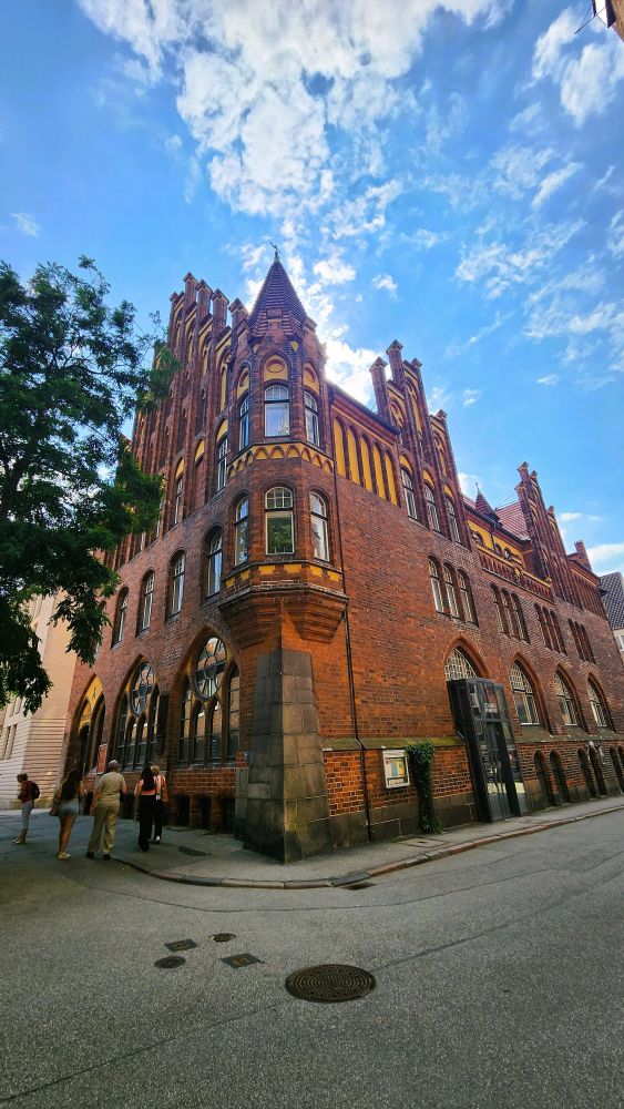 这座极具辨识度的红砖建筑,以其精美的新哥特式山墙和那个像灯塔一样的圆柱形转角塔楼而闻名。这里不仅是一座美丽的建筑,更是德意志文学与艺术的圣殿。