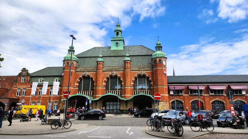 从Keil坐普通火车大约1个小时就到了Lübeck。车站建于 1908 年, 典型的 北德砖砌式建筑: 绿色铜顶、拱形大门、红砖外墙。 是德国最漂亮、最有特色的中型火车站之一。 (汉堡的火车站内外也都很不错。)