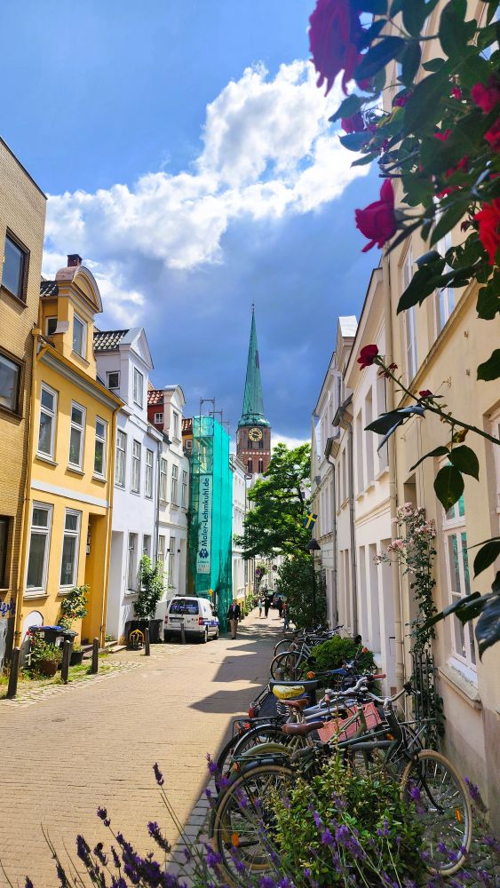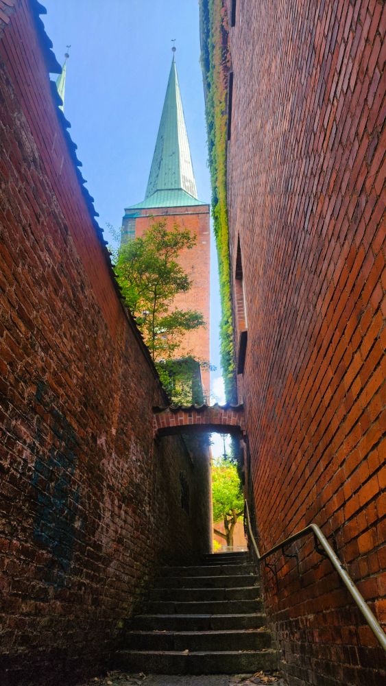 走在这样的巷子里,你会突然明白:有些城市的美,不在广场,而在这些被时间挤出来的缝隙。砖墙逼仄,光线稀薄,可塔尖却永远在那儿——像是提醒你,方向感不是靠路,是靠心里的那根线。吕贝克最迷人的地方,就是她的7塔, 每当你以为自己迷路了,一抬头,却有一座塔告诉你:不, 你没有迷路,你一直都在我的脉搏上。有些城市是用街道讲故事,吕贝克正是用这些狭窄的坡道,把历史悄悄塞进了你的胸口。穿过岁月的阴影,城市在尽头早已给你留住了一束光...