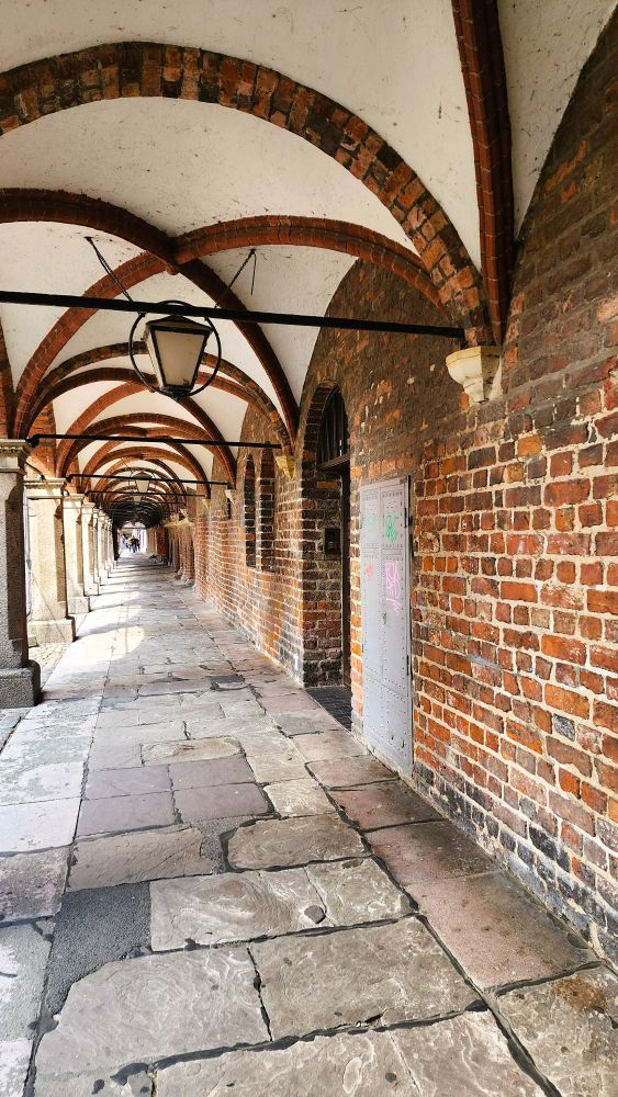 其实这是吕贝克非常有名的“面包摊位”所在地。在中世纪,面包师们就在这些拱廊下摆摊售卖。现在,这里变成了一个优雅的通道,连接着集市广场和繁华的购物街。