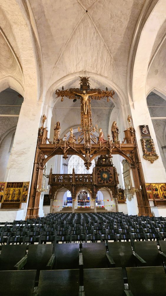 教堂的镇殿之宝“胜利十字架”。它的风格是:耶稣身体挺直, 表情庄严而非痛苦, 手臂展开但不下垂, 身体比例修长, 带着“王者”气质。 这是北德哥特式的典型表达:基督不是被动受难,而是战胜死亡的君王。这是“胜利十字架”,不是“痛苦十字架”。