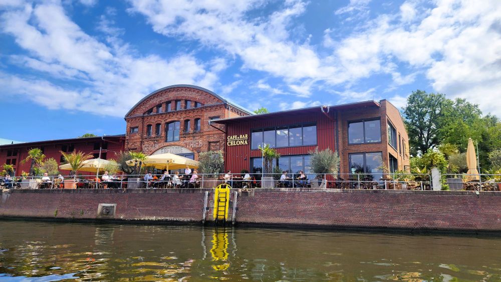 Trave 河东岸的仓库区(Speicher), 其中一栋旧仓库被改造成 Café & Bar Celona。 吕贝克北港(Nordhafen)旧仓储区在二战中部分受损, 但大多数砖结构幸存, 战后被修复并改作商业用途。