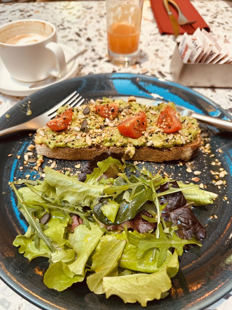 没等多久我点的牛油果吐司和一杯卡布奇诺就送到了我的面前。加上忍不住加点的一份牛角酥,这顿早餐差不多是我平时三倍的量,让我在罗马的第一个早晨就把胃给撑到得立马起身活动活动以助消化。闺蜜要下午才到,而我订的另一个精品酒店最早下午二点才能入住。于是我有整个上午的时间独自在这个城市闲逛。